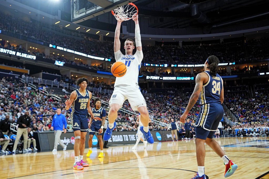 The Bluejays absorbed some punches from #14 Akron in the early going of their first-round matchup and answered back with interest. Led by 23 points from seven-foot center Ryan Kalkbrenner, Creighton shot 52.8% from the floor and 58.8% from three (10-of-17) en route to a 77-60 victory over the Zips.